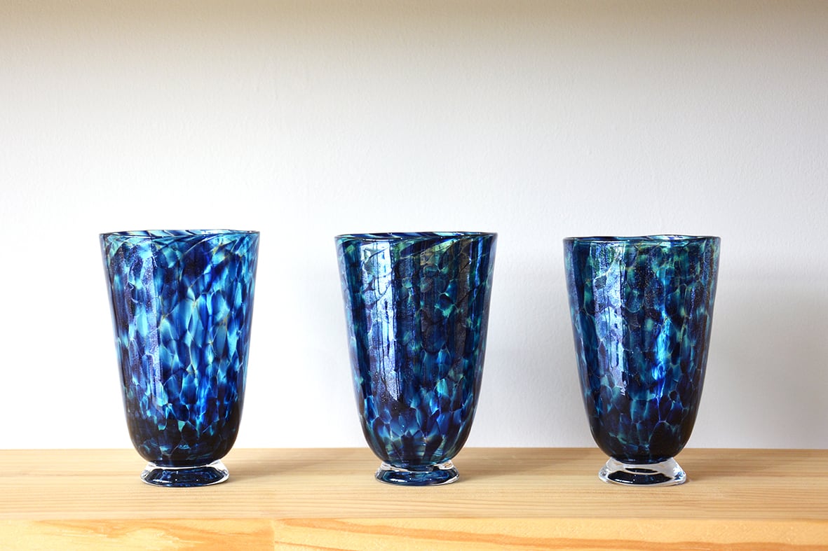青く深い星空をイメージして制作した紺青星空のグラスです。